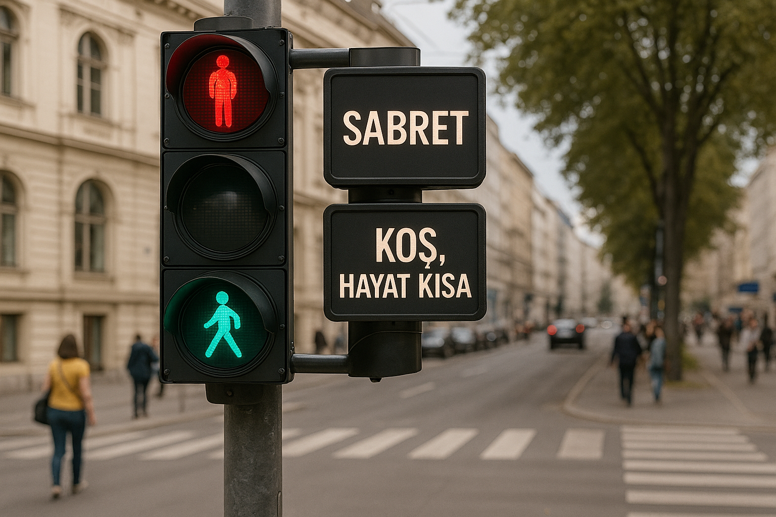 Kırmızıda “Sabret”, yeşilde “Koş, hayat kısa